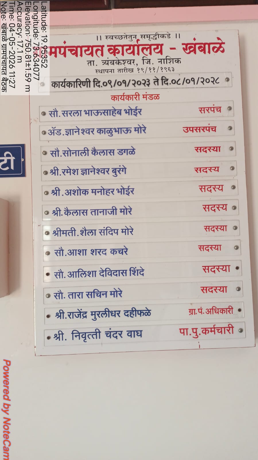 कार्यालय आहे. ग्रामपंचायत कार्यकारिणीत लोकनियुक्त सरपंच सौ. सरला